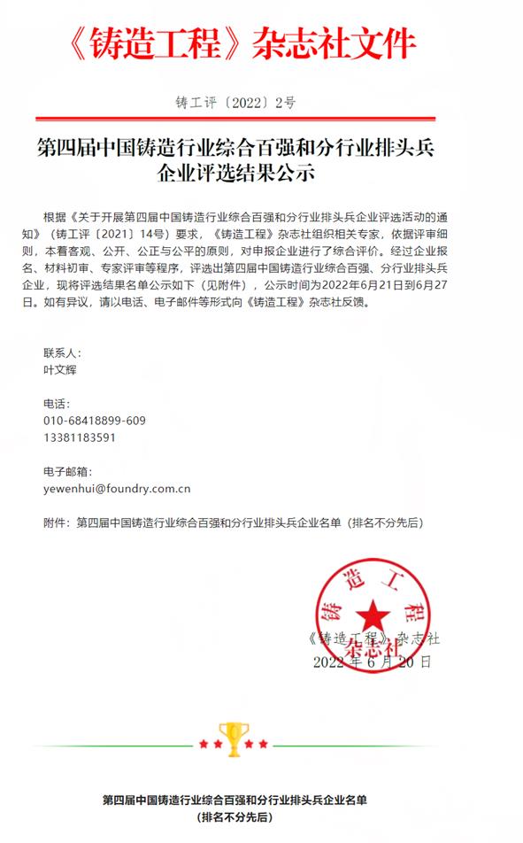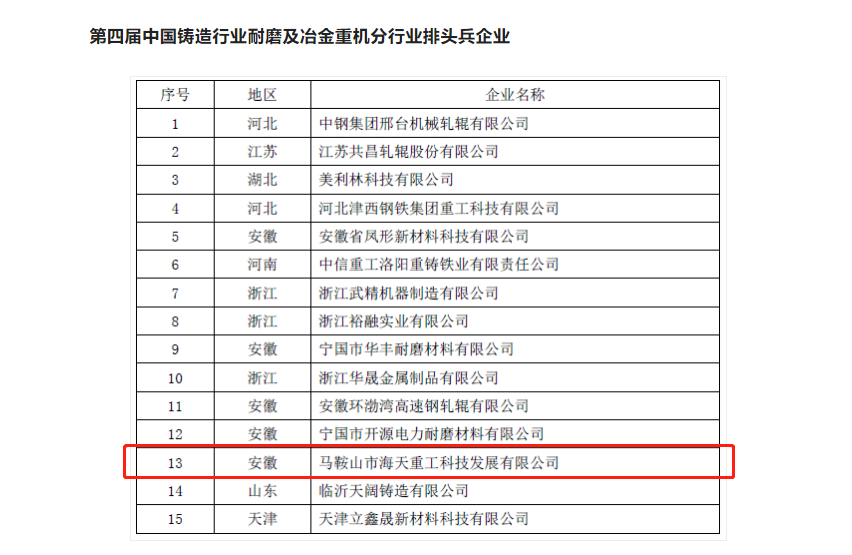 根據(jù)《關(guān)于開展第四屆中國(guó)鑄造行業(yè)綜合百?gòu)?qiáng)和分行業(yè)排頭兵企業(yè)評(píng)選活動(dòng)的通知》(鑄工評(píng)〔2021〕14號(hào))要求,《鑄造工程》雜志社組織相關(guān)專家,依據(jù)評(píng)審細(xì)則,本著客觀、公開、公正與公平的原則,對(duì)申報(bào)企業(yè)進(jìn)行了綜合評(píng)價(jià)。經(jīng)過(guò)企業(yè)報(bào)名、材料初審、專家評(píng)審等程序,評(píng)選出第四屆中國(guó)鑄造行業(yè)綜合百?gòu)?qiáng)、分行業(yè)排頭兵企業(yè)。海天重工被評(píng)選為“第四屆中國(guó)鑄造行業(yè)耐磨及冶金重機(jī)分行業(yè)排頭兵企業(yè)“,這是海天重工獲得的象征行業(yè)地位的又一個(gè)標(biāo)志性榮譽(yù)。