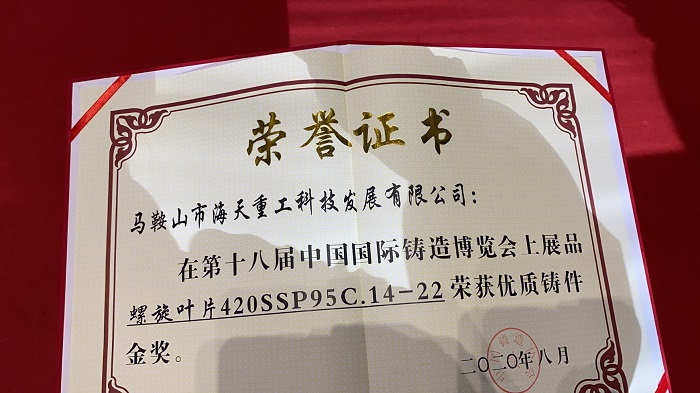 2020年8月17-19,海天在上海開展的鑄造展會(huì)取得了優(yōu)異的成績(jī)——螺旋葉片獲得了鑄件金獎(jiǎng)。此外,很多參展客戶與廠商也紛紛與海天進(jìn)行交流溝通,獲得了眾多好評(píng)。