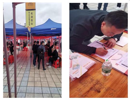 招聘會現(xiàn)場人頭攢動,氣氛熱烈。各招聘單位為前來求職農民工熱心介紹招聘信息、解答問題。